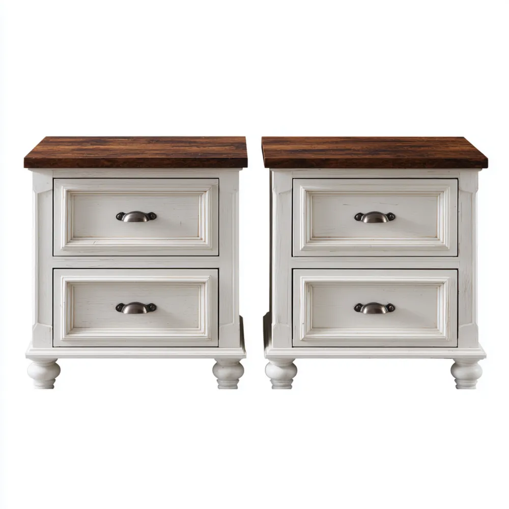 機能のハイライト2つの広々とした引き出しがあり、本や個人のアイテムを整理するのに便利です。また、上部の表面は灯や時計などを置くスペースとして利用できます。